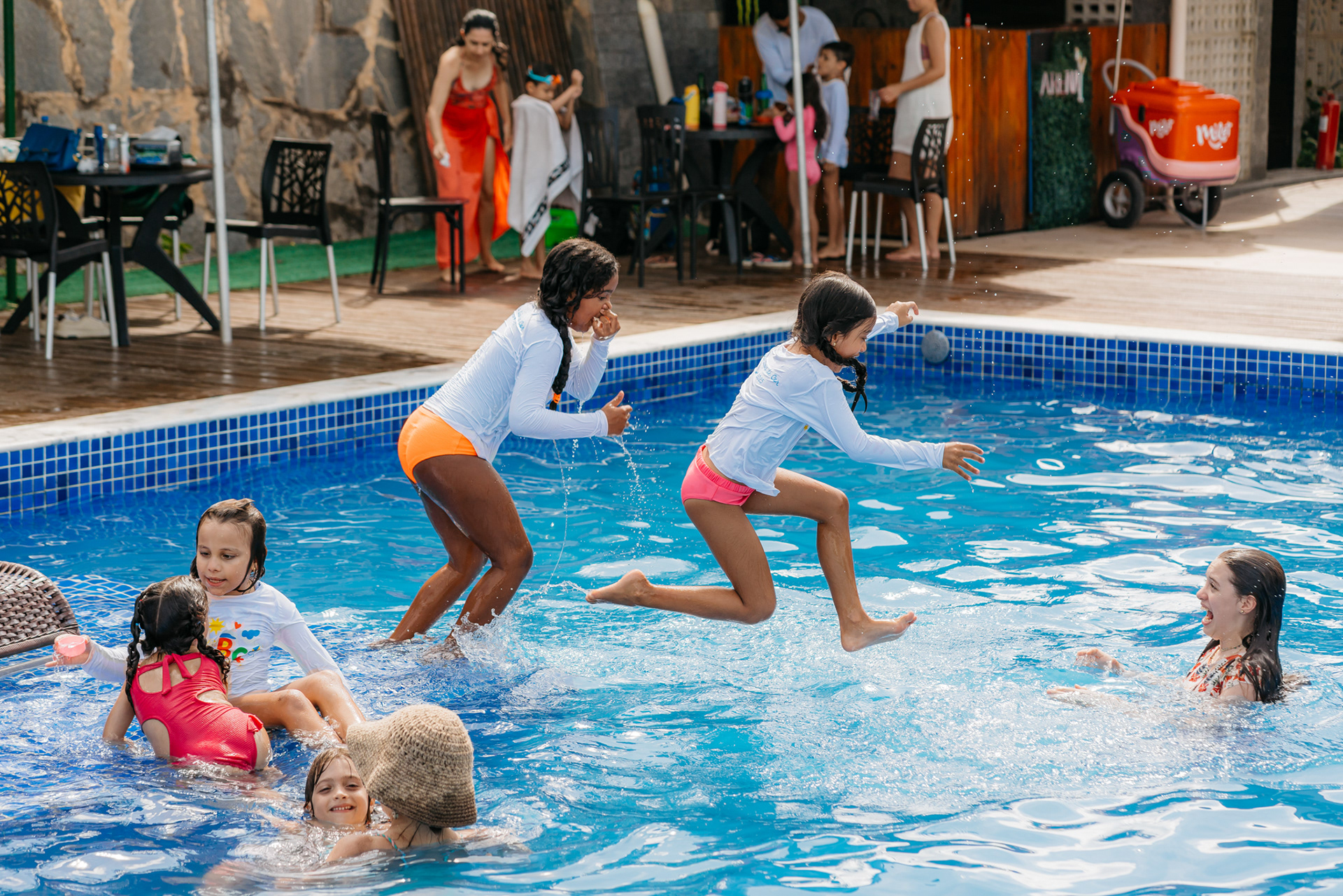 A celebração ganhou novos ares em um dia inesquecível no clube. Com sol, área de lazer e muita piscina, a formalidade deu lugar à total liberdade.