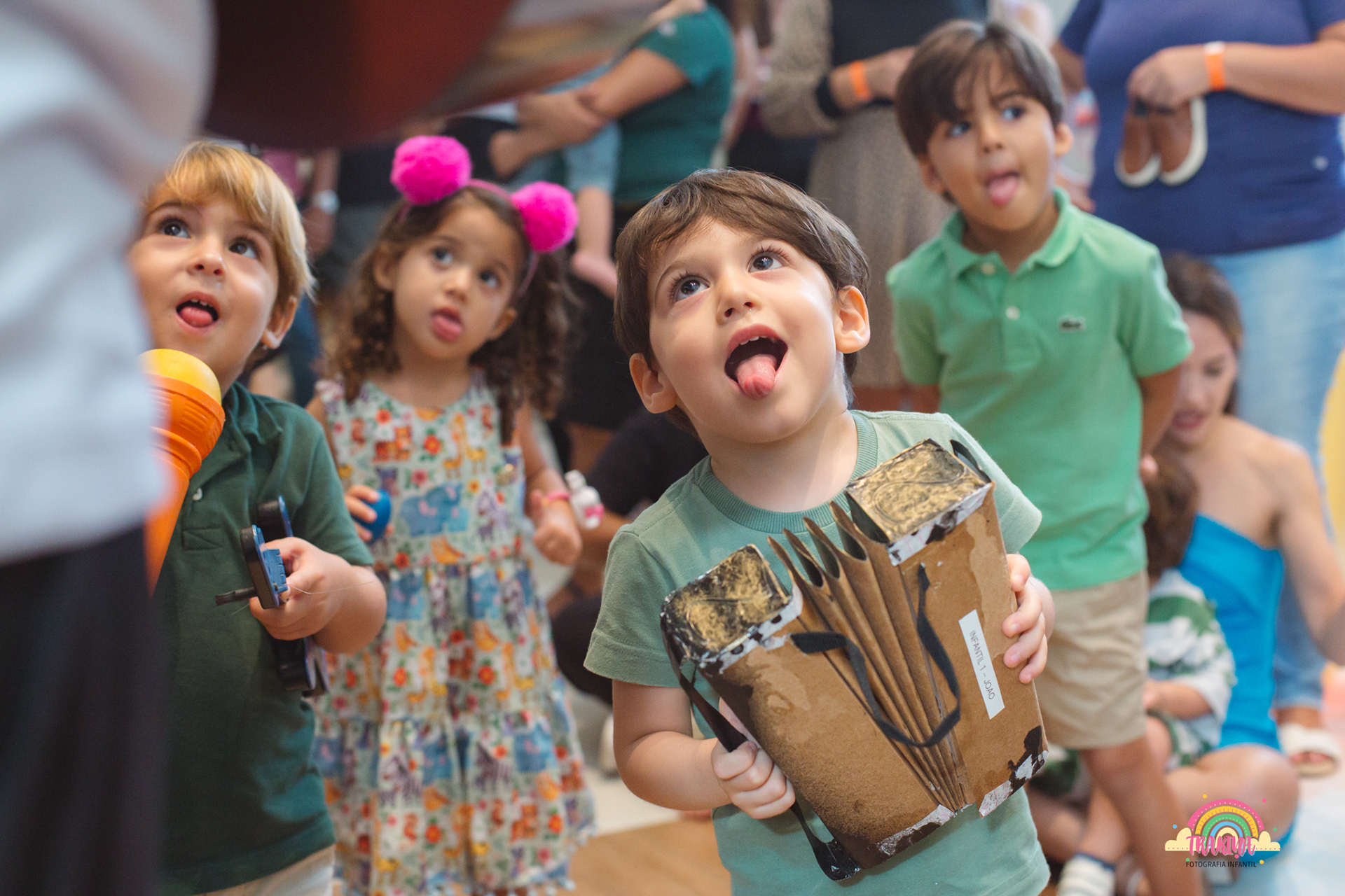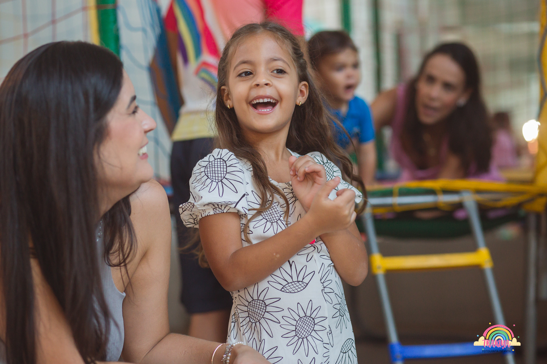 À medida que os convidados começaram a chegar, as expressões de alegria e expectativa eram palpáveis. As crianças, ao verem o escorrego e os animadores prontos para entretê-las, correram para brincar, e os primeiros sorrisos largos foram eternizados pela minha câmera. Capturar a energia e a felicidade dos pequenos é sempre gratificante.